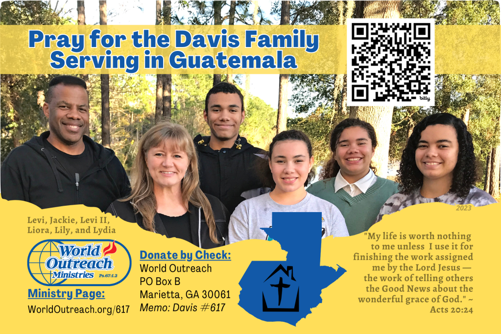 Levi and Jackie Davis rely on you to partner in prayer. God bless those who lift up our service details, our needs, and the people we serve. God bless you.
